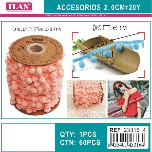 Passamaneria Ilan Pom Pom Larga 2.0 Cm, 20 Iarde per Decorazioni di Gonne e Artigianato