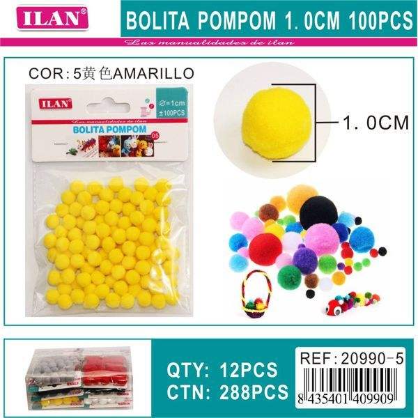 Palline Pompom Ilan 1.0 Cm Gialle 100 Pezzi per Decorazioni Artigianali