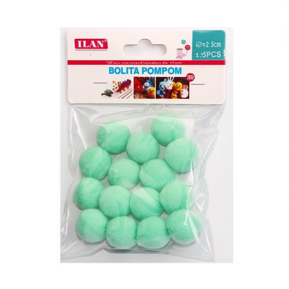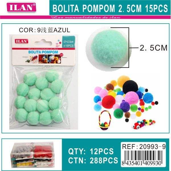 Palline Pompom Ilan 2,5 cm 15 Pezzi Azzurro Chiaro per Decorazioni Artigianali