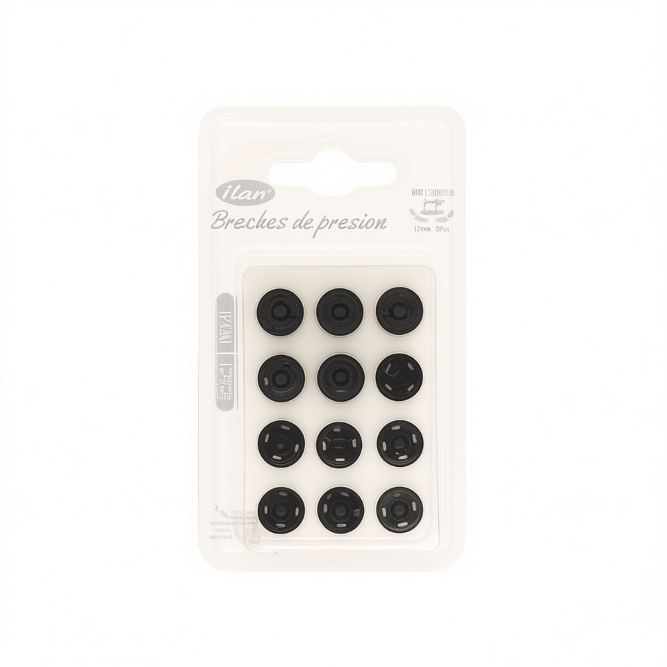 Ilan Chiusure a Pressione 12mm Nere 12 Pezzi