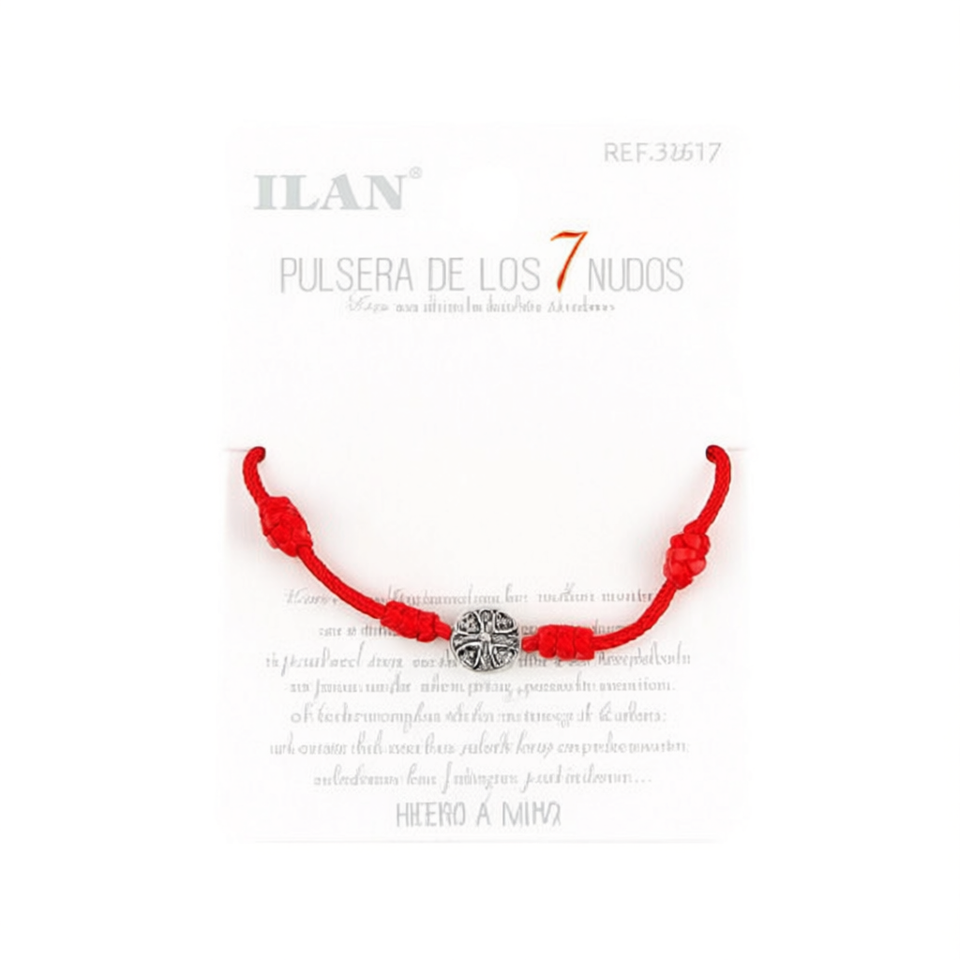 Braccialetto Ilan con 7 Nodi, Corda Rossa e Charm in Argento, Fatto a Mano