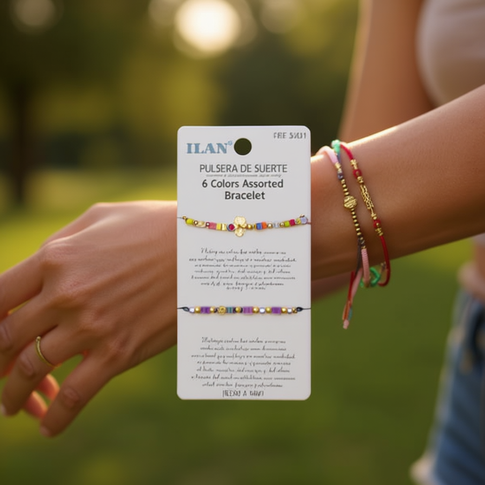 Braccialetto Portafortuna Ilan in Acrilico a Forma di Cuore, Resistente, 6 Colori Assortiti