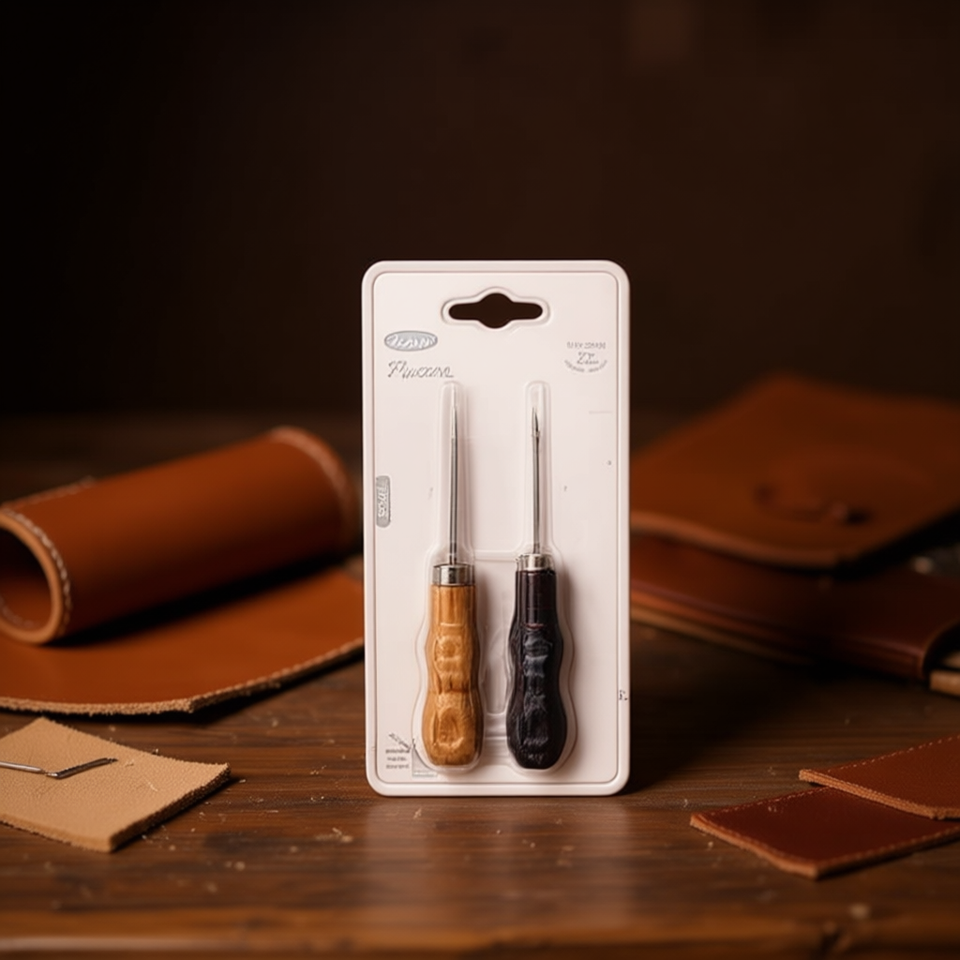 Ilan Punzon Set di 2 Puntine per Pelle con Manico in Legno, Strumento per Lavorazione del Cuoio