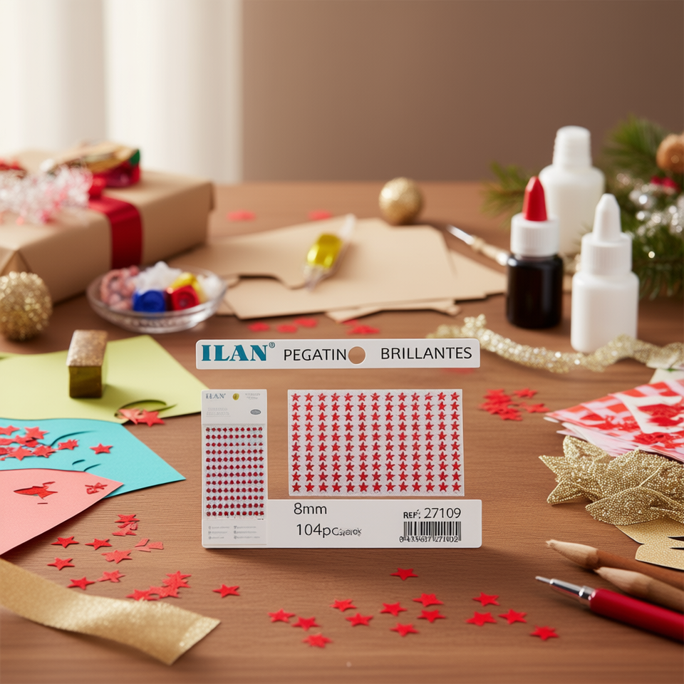 Adesivi con strass a forma di stella rossa Ilan 8mm circa 104 pz Rif. 27109