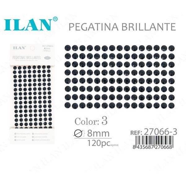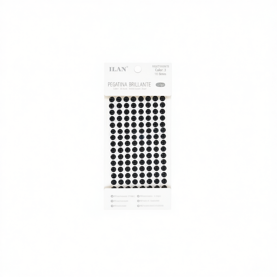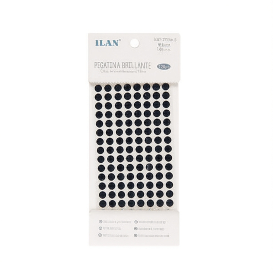 Ilan Rhinestone Glitter Sticker 8mm Black 120pc Round Flatback Acryl Glue On