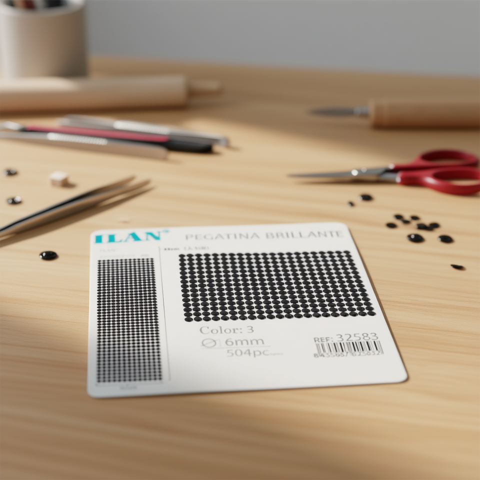 Adesivi con Strass Ilan 6mm Neri Lucidi, Confezione Grande da 504 Pezzi