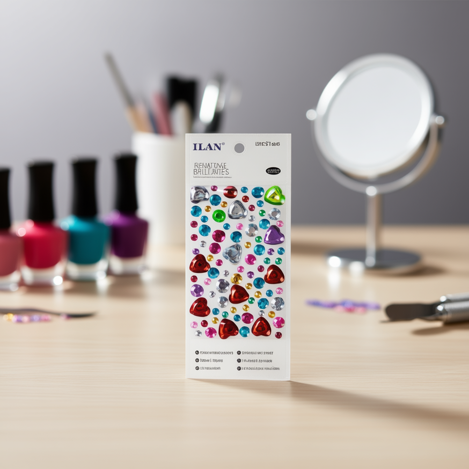Adesivi con strass Ilan 6-20 mm multicolori a forma di cuore e stella per nail art