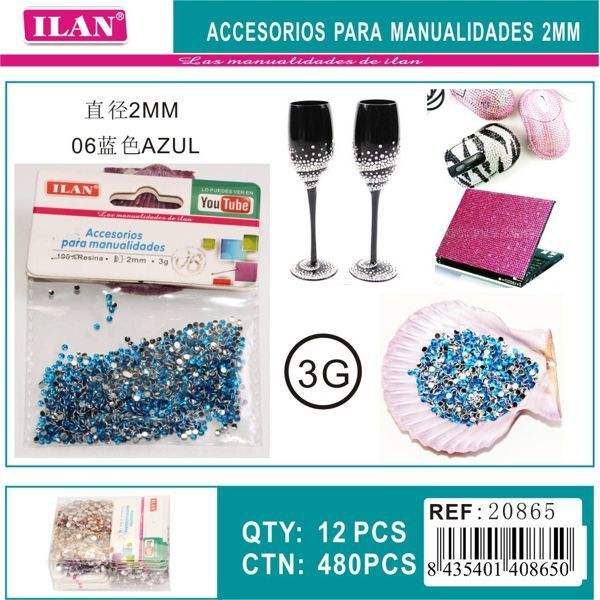 Strass Ilan 2 mm blu per artigianato, confezione da 3G