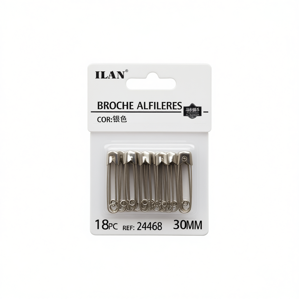 Spille di Sicurezza Ilan 30mm Argento 18 Pezzi Accessori per Abbigliamento
