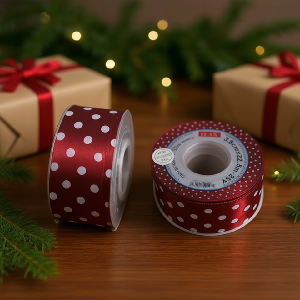 Nastro in Raso Ilan 3,8 Cm X 25 Iarde Bordeaux a Pois per Decorazioni e Regali