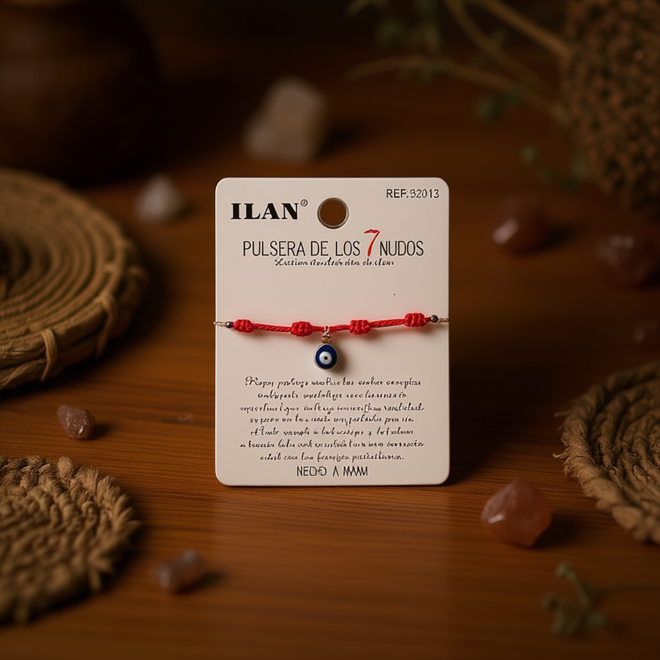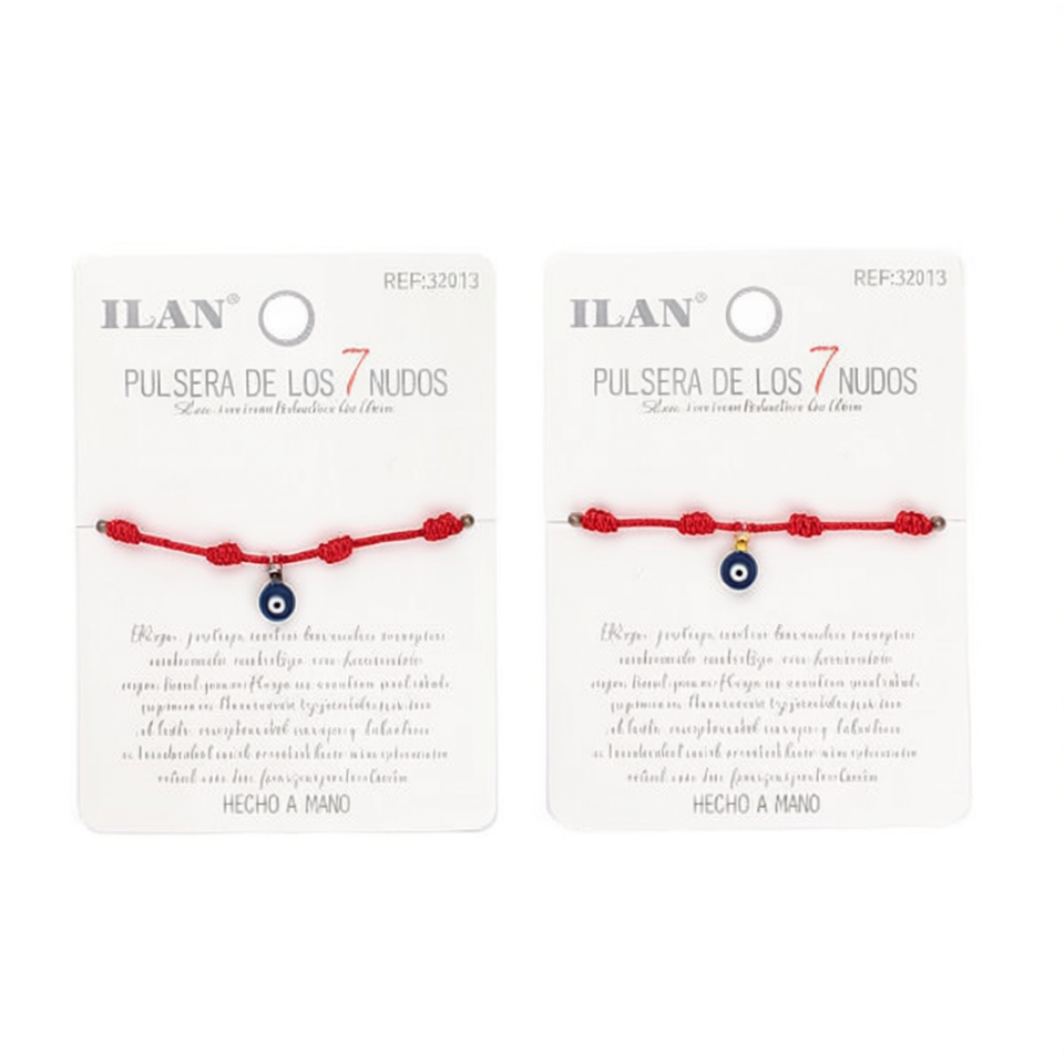 Braccialetto Ilan a sette nodi con corda rossa e ciondolo a occhio, amuleto protettivo fatto a mano
