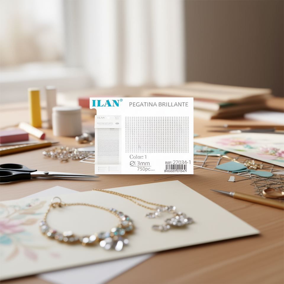Adesivo con strass lucidi Ilan 3 mm colore 1 750 pezzi bianco