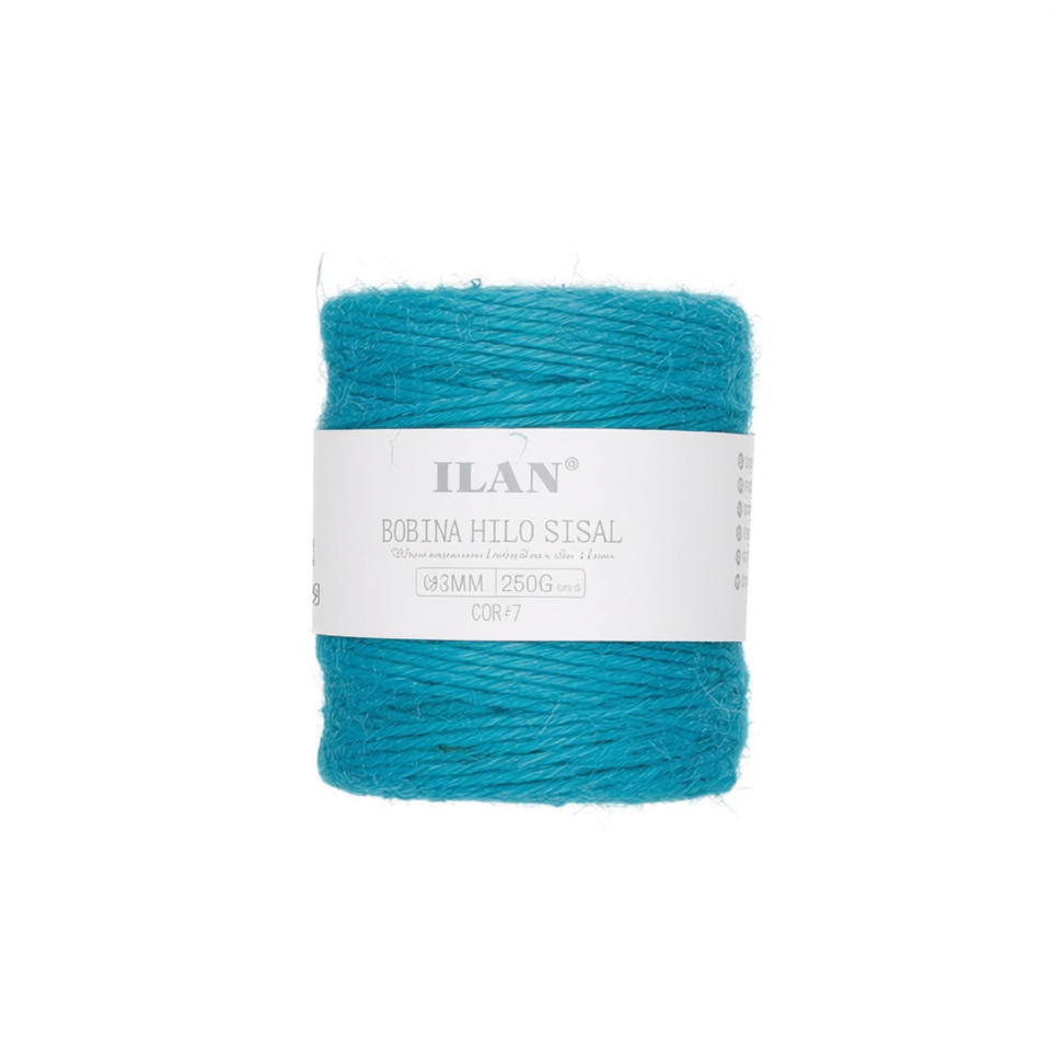 Spago di sisal Ilan, bobina da 3 mm, blu lago, 250 g, per lavori artigianali