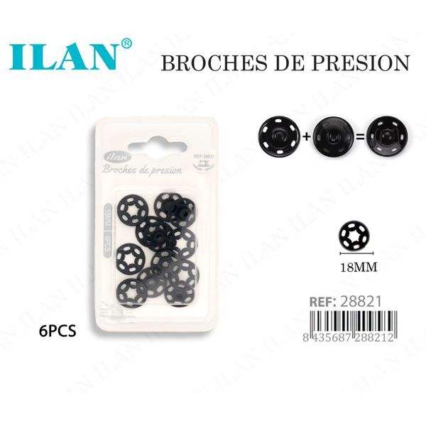 Bottoni a pressione in plastica Ilan da 18 mm, 6 pezzi