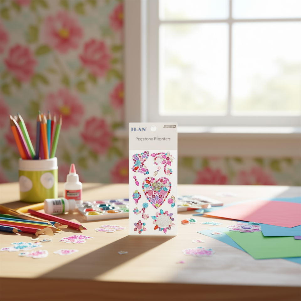 Adesivi con strass scintillanti Ilan Cuori Farfalle Multicolore 39043