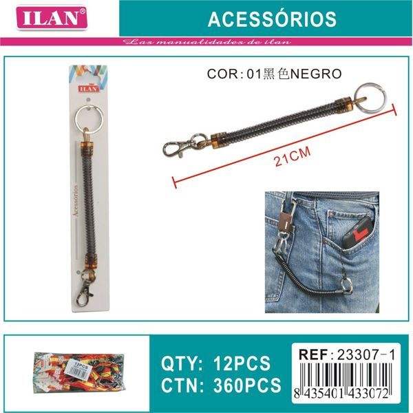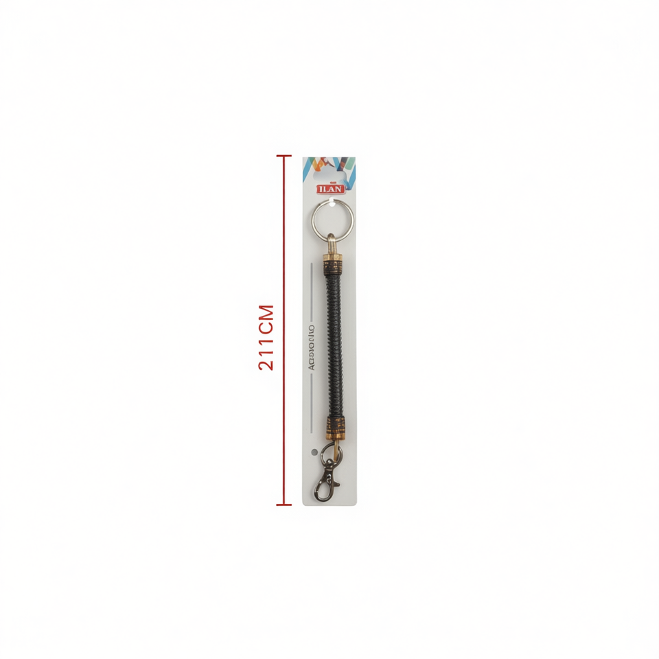 Portachiavi a molla Ilan 21 cm con gancio in metallo nero per chiavi e pantaloni