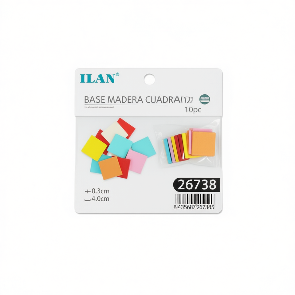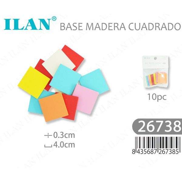 Base Quadrata in Legno Ilan 4x0,3 Cm 10 Pezzi Materiali per Artigianato
