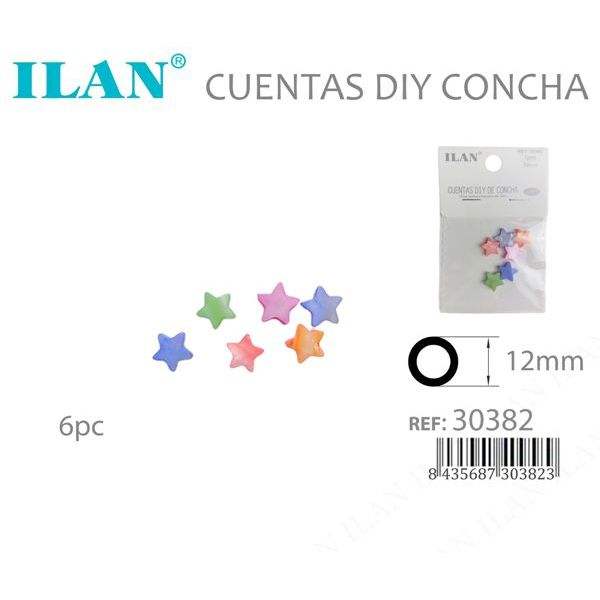 Perline a conchiglia Ilan Star 12 mm multicolori per artigianato fai da te, 6 pezzi