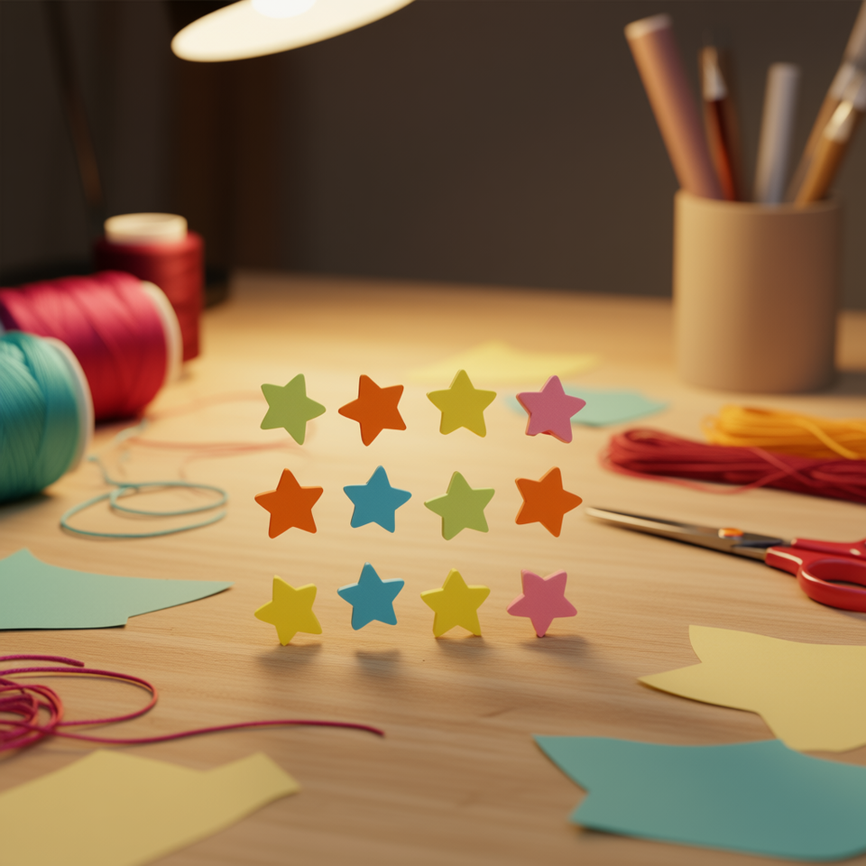 Accessorio in legno a forma di stella Ilan 12mm 12 pezzi per lavori artigianali