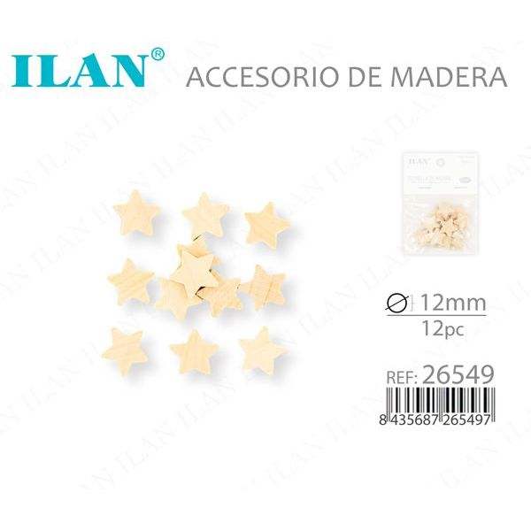 Accessorio in legno a forma di stella Ilan da 12 mm, 12 pezzi, per la creazione di decorazioni
