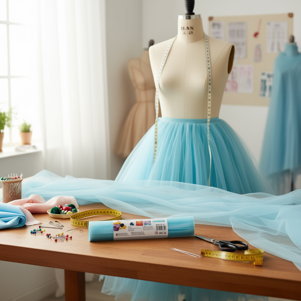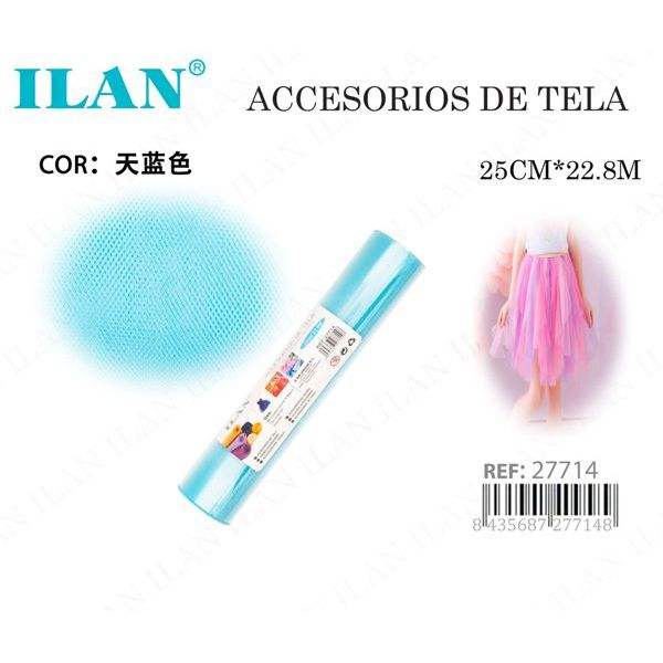 Tessuto in Tulle Trasparente Blu Cielo 25cm X 22.8m per Creazione di Abiti da Bambina