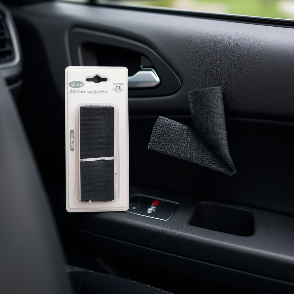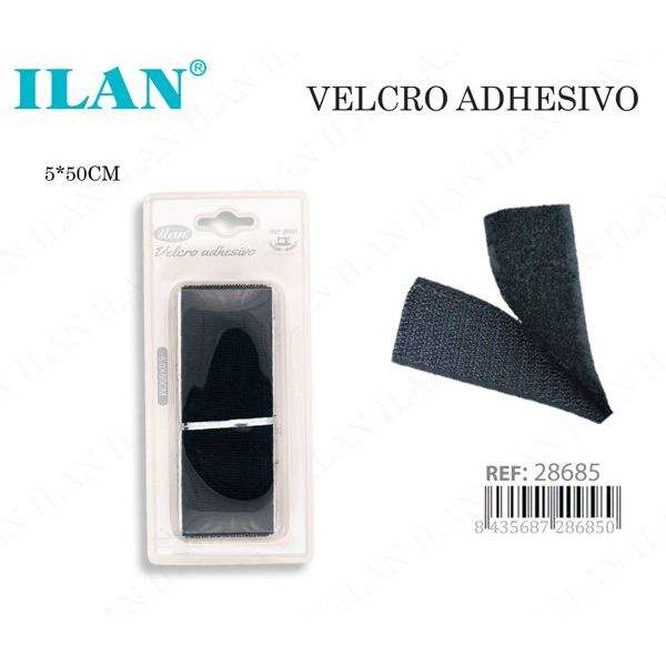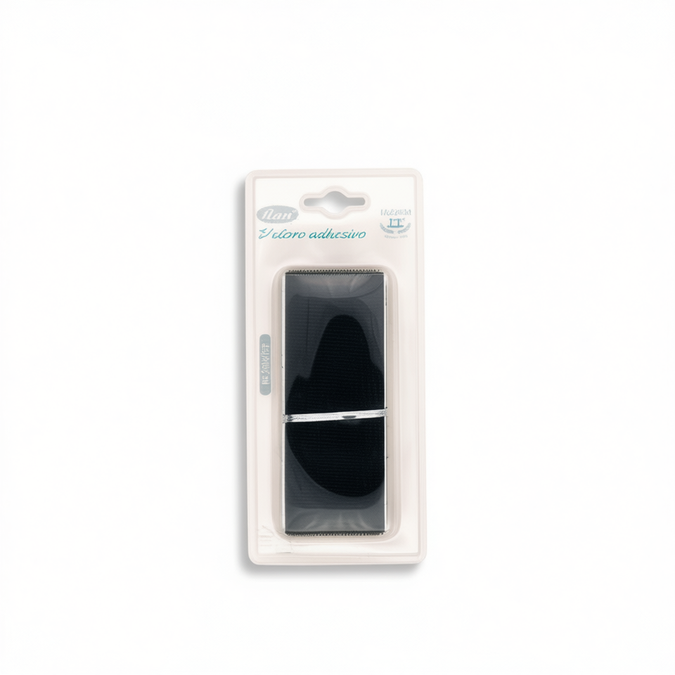 Nastro Adesivo in Velcro Ilan 5x50 Cm Nero Striscia con Gancio e Anello