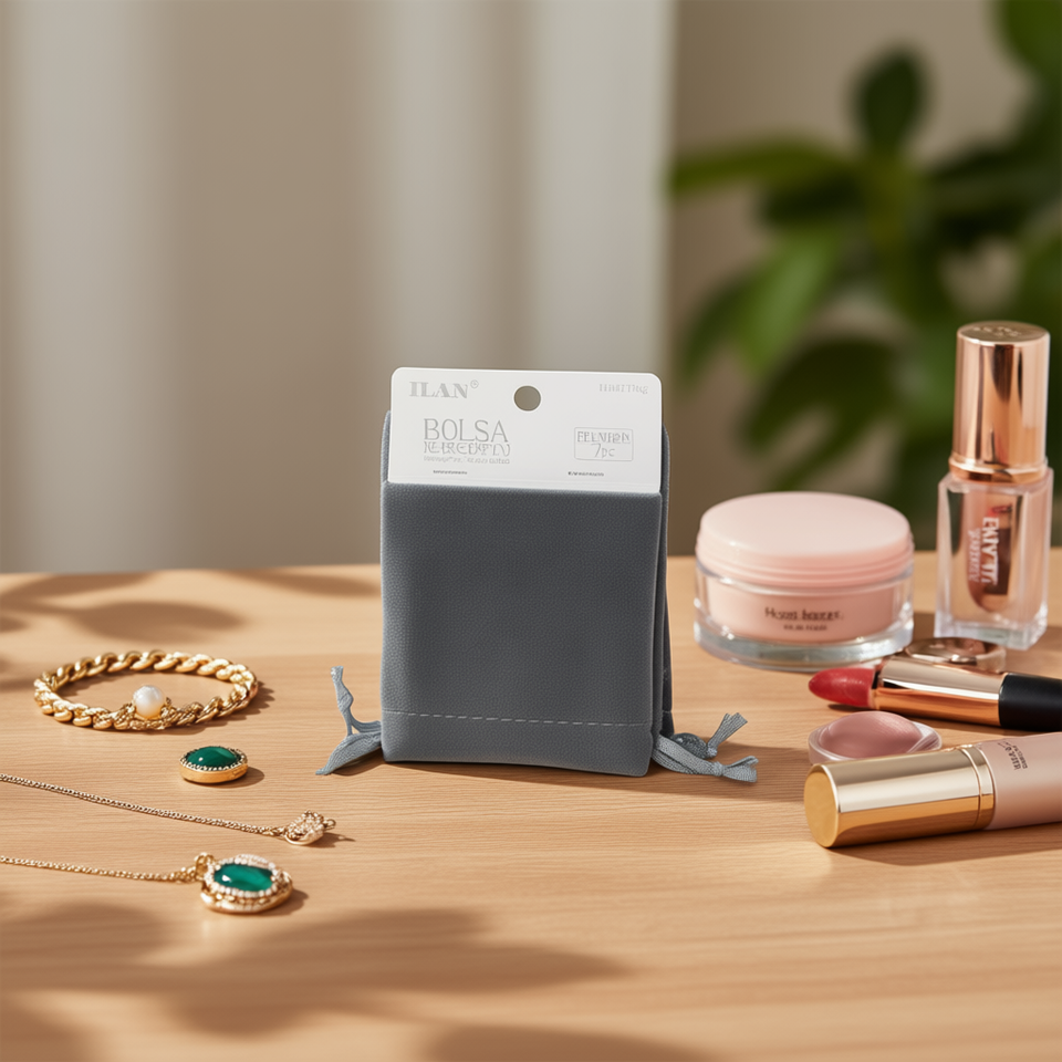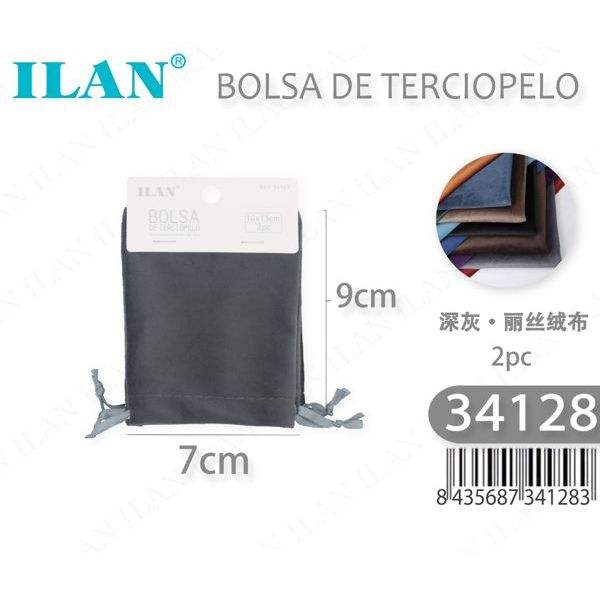 Borsa in Velluto Ilan 7x9 Cm Grigio Scuro 2 Pezzi