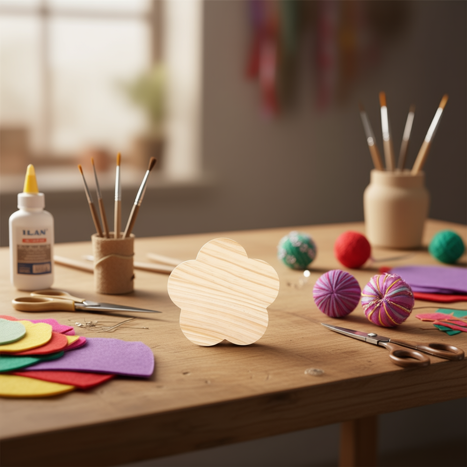 Ilan Wooden Base Plum Blossom Shape 10cm 5mm Thickness Craft DIY