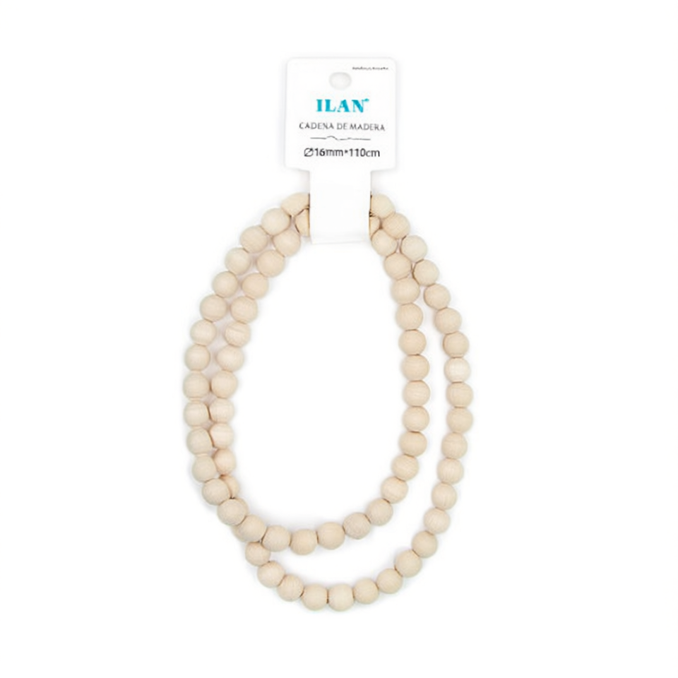 Catena di perline in legno Ilan 16mm 110cm, perline in legno naturale per la creazione di abbigliamento