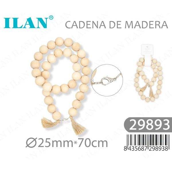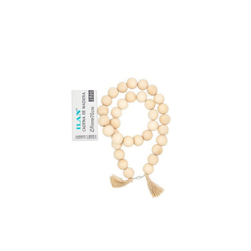 Catena di perline in legno Ilan da 25 mm 70 cm con nappe per la creazione di abiti e artigianato
