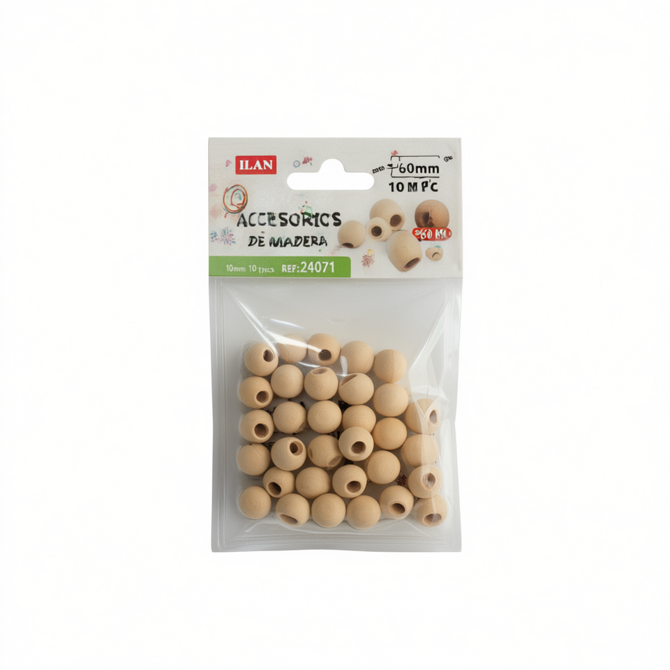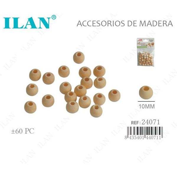Perline in Legno Ilan 10mm con Foro Grande, 60 Pezzi, Accessorio per Artigianato