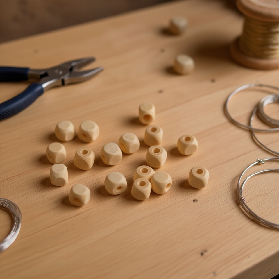 Perline in legno Ilan 14x14mm naturali per artigianato e creazione di gioielli