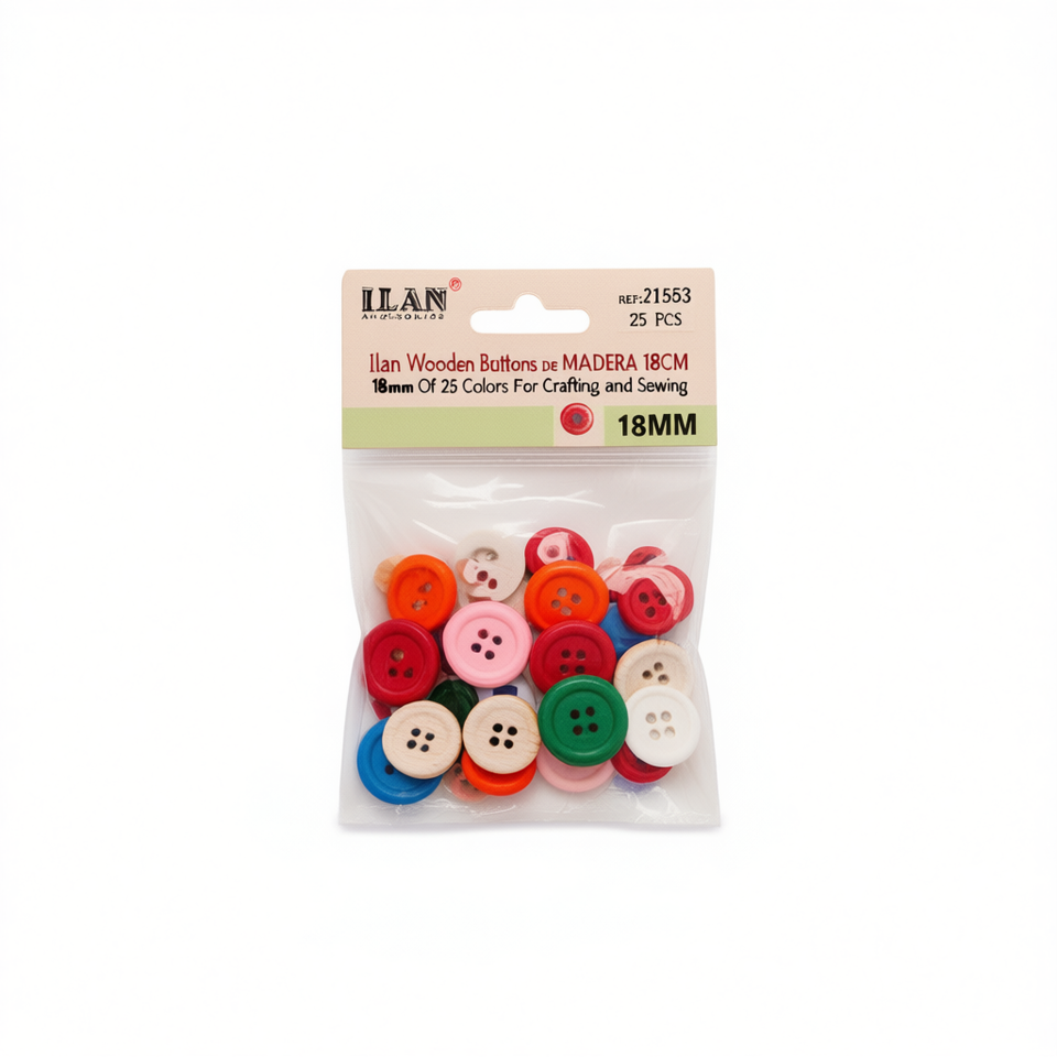 Bottoni in legno Ilan 18mm 25 pezzi rotondi a 4 fori per artigianato e cucito