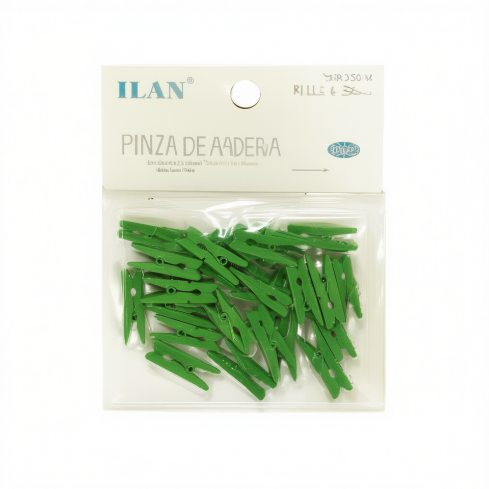 Ilan Mollette in Legno 3,5 Cm Verdi 15 Pezzi per Asciugare il Bucato