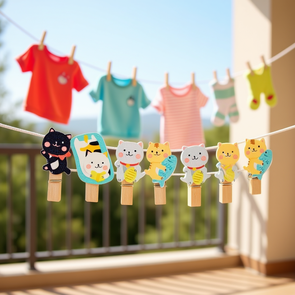 Ilan Mollette in Legno 3,5cm 10pz Design Gatto Clip per Vestiti