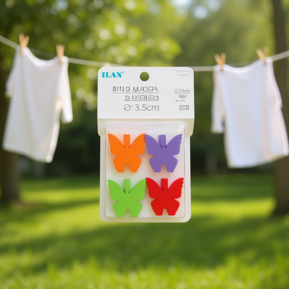 Ilan Pratiche Mollette in Legno a Forma di Farfalla 3,5cm 4pz Clip Colorate per Indumenti dalla Cina