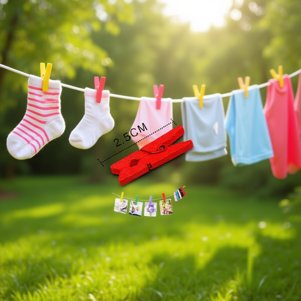 Ilan Mollette in Legno 2,5 Cm Rosse Confezione da 25 per Bucato e Lavori Artigianali