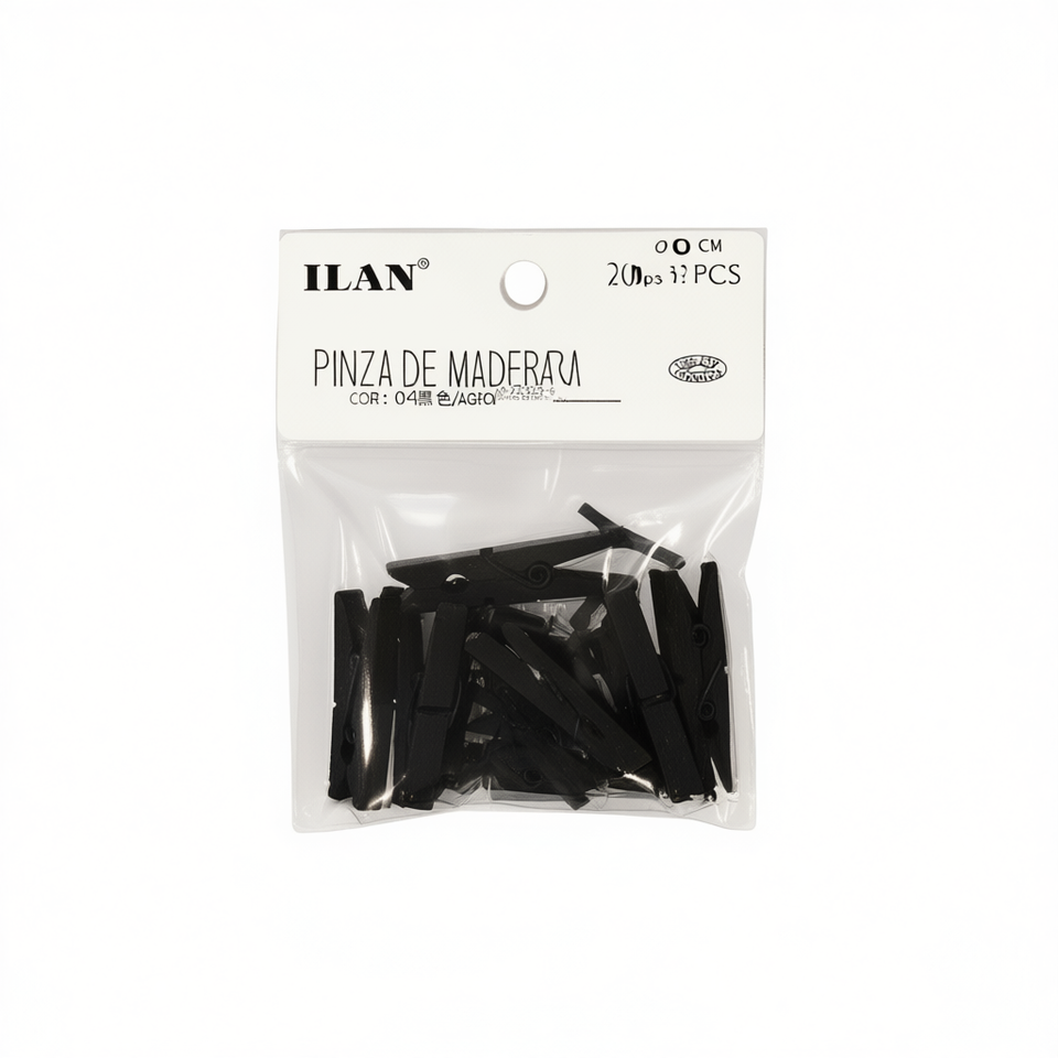 Ilan Mollette in Legno Nere da 3,0 cm, 20 Pezzi per Asciugare i Vestiti