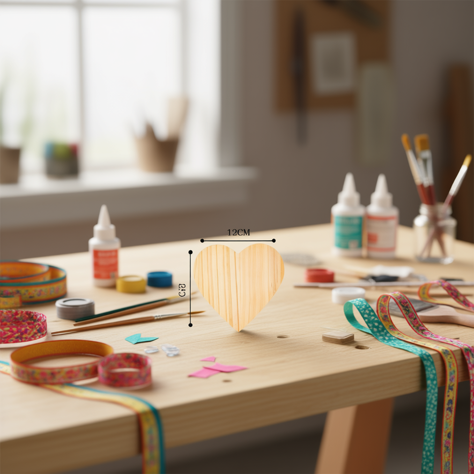 Tavoletta di legno a forma di cuore Ilan 12x0,5 cm per decorazioni artigianali, 12 pezzi