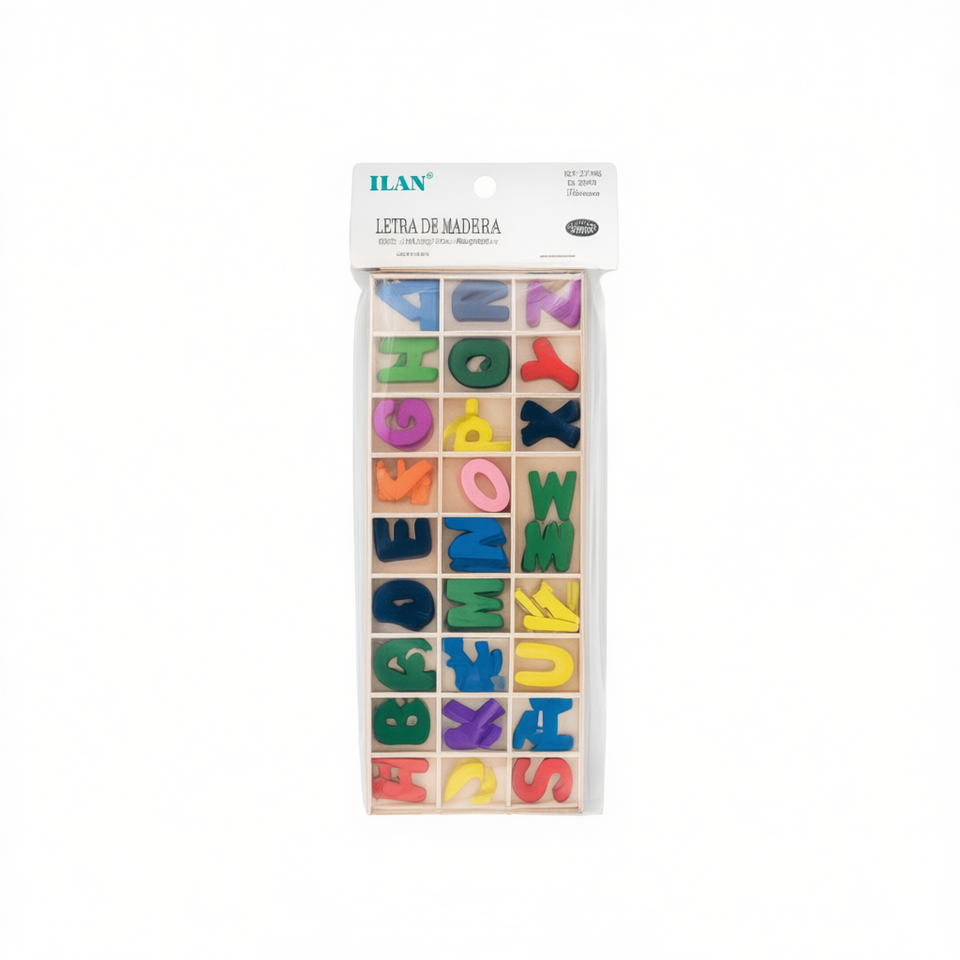 Lettere in legno Ilan in scatola 21,5x9 cm, gioco educativo per l'apprendimento dei bambini