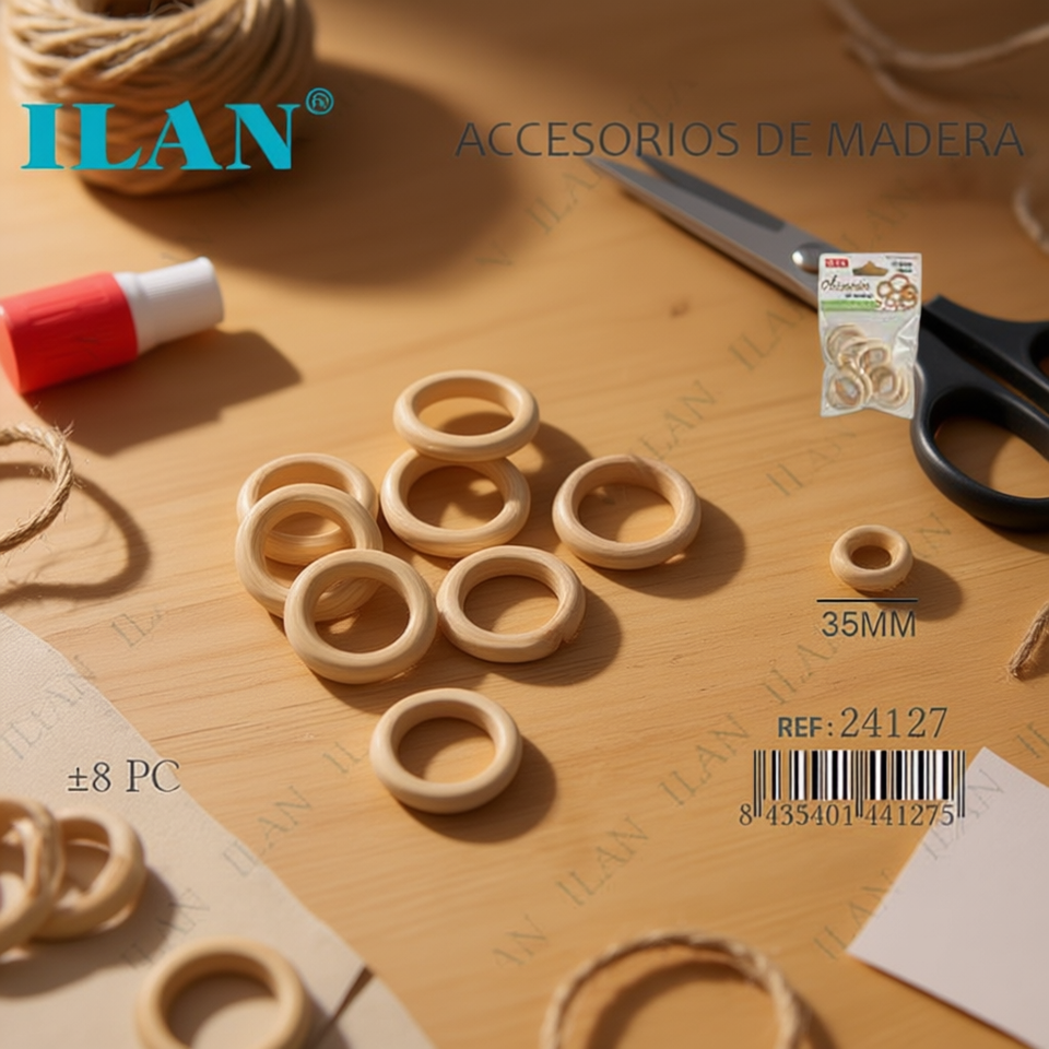 Anelli in legno Ilan 35 mm 8 pezzi per artigianato e decorazioni
