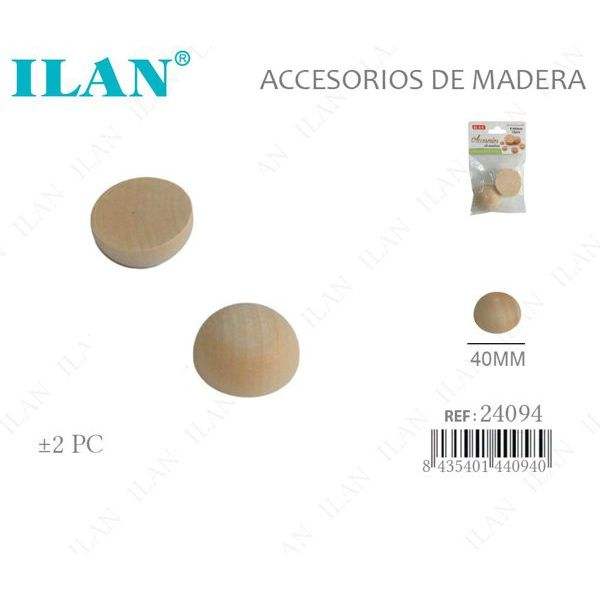 Perla semisferica in legno Ilan da 40 mm per accessori di abbigliamento
