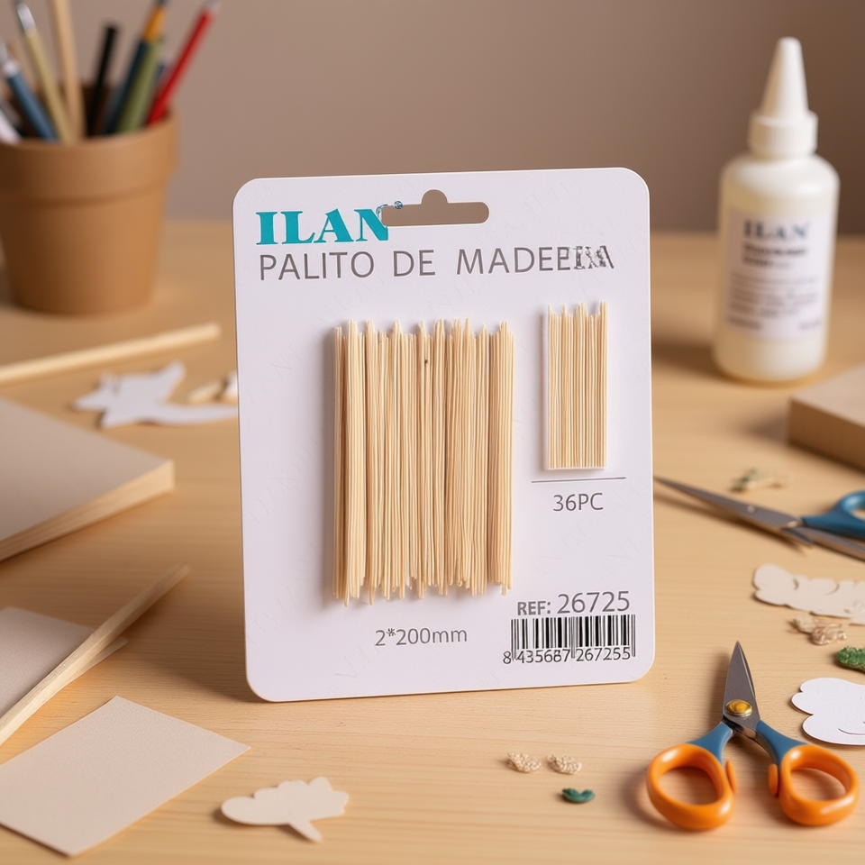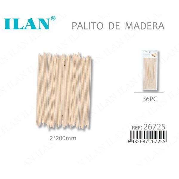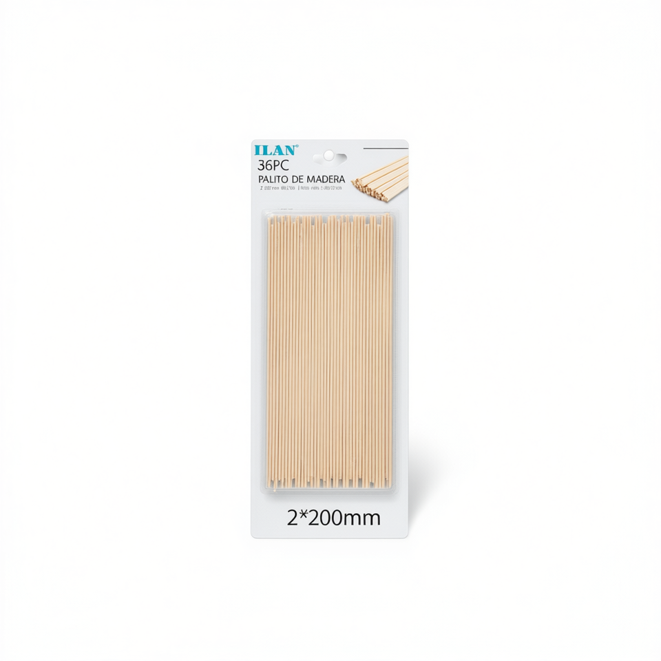 Ilan Wooden Sticks 2x200mm 36Pc For Crafts And DIY
