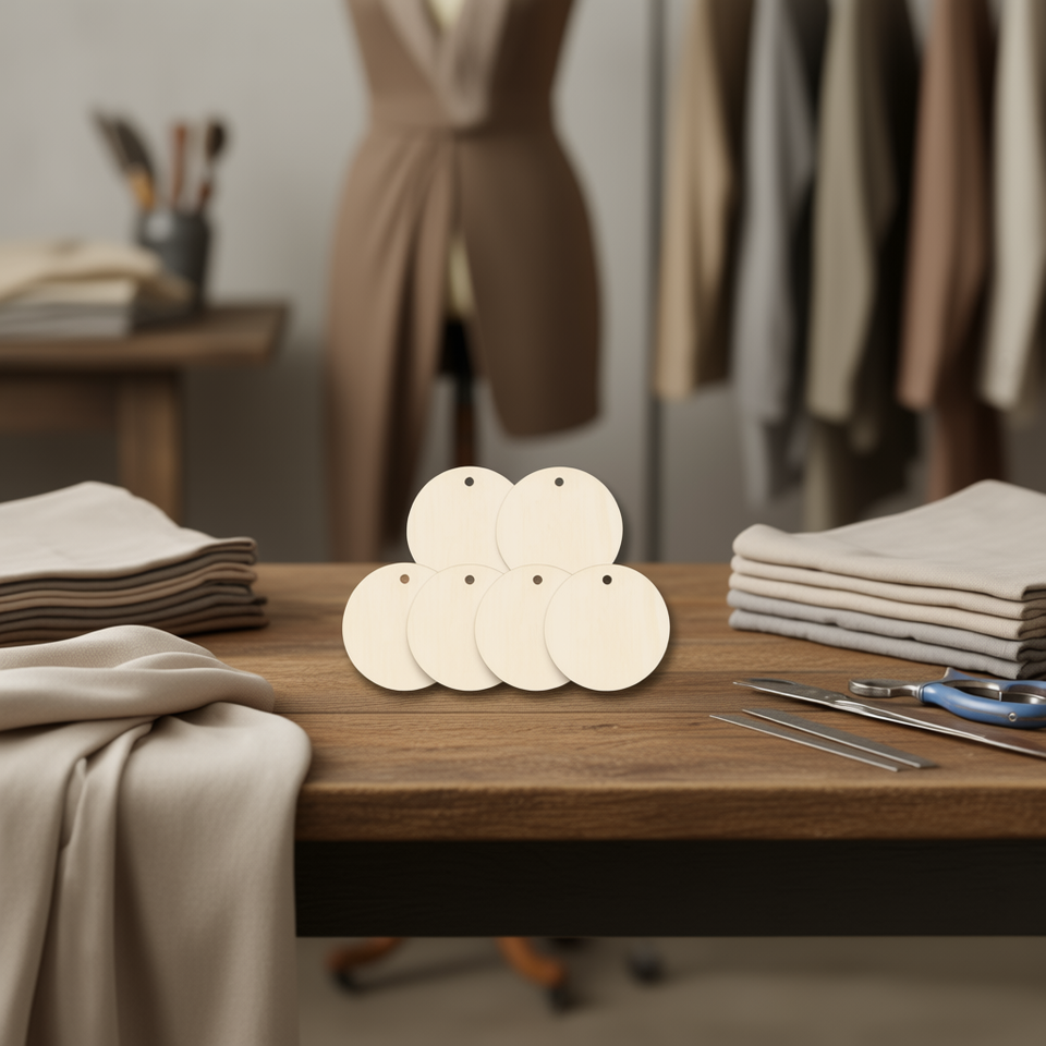 Etichette in Legno Ecologiche Ilan 5x0,5 Cm con Finitura Opaca e Spago di Iuta, 6 Pezzi per Etichettatura Indumenti