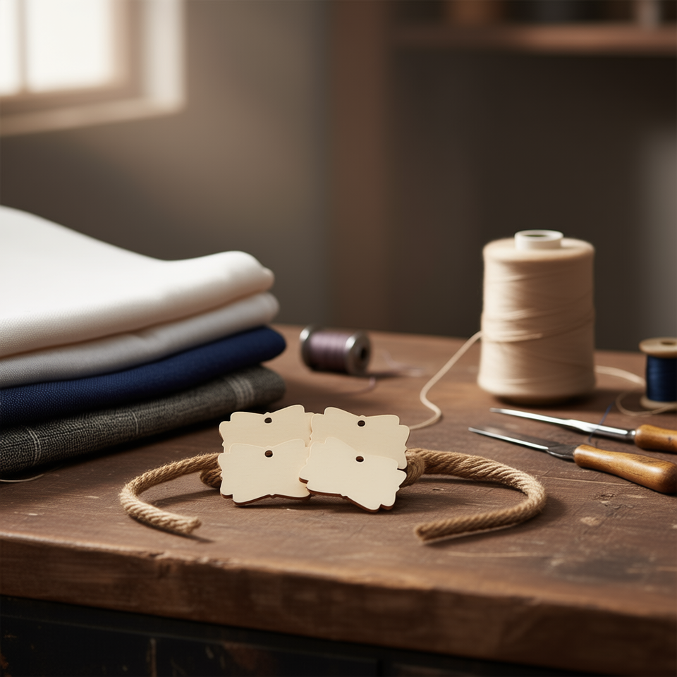 Etichette in Legno Ilan 5x0,5 Cm con Corda di Canapa, 6 Pezzi per Etichettatura Indumenti