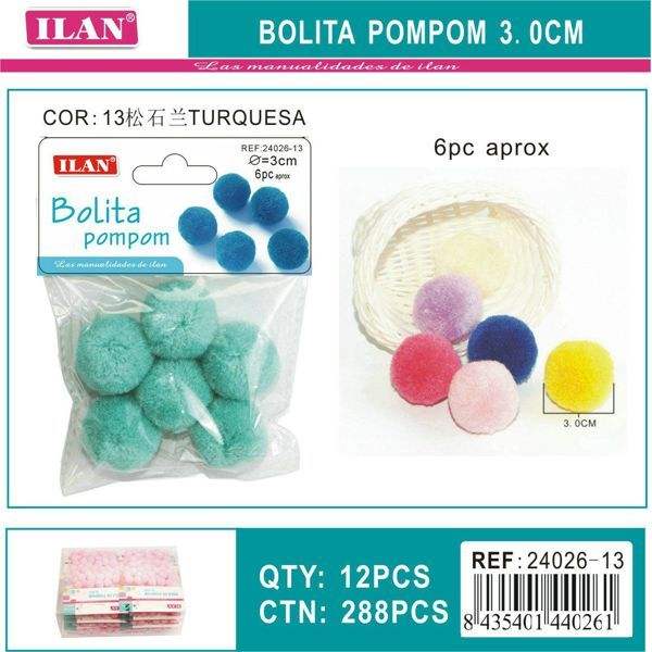 Pompon in Lana Ilan 3.0 Cm Colore Turchese per Forniture Artigianali