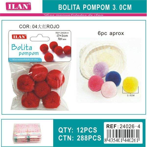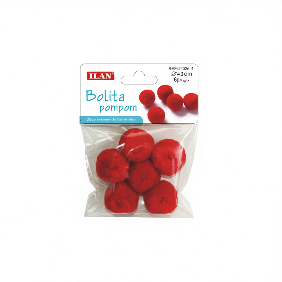 Pompon in Lana Ilan 3.0 Cm Rosso Intenso per Decorazioni Artigianali