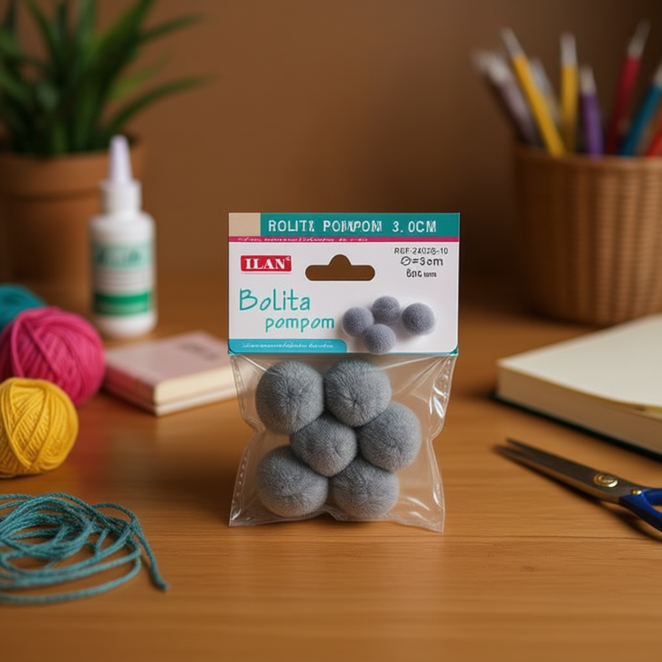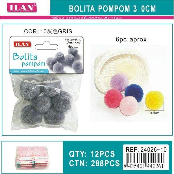 Pompon in Lana Ilan 3 Cm Grigio per Decorazioni Artigianali
