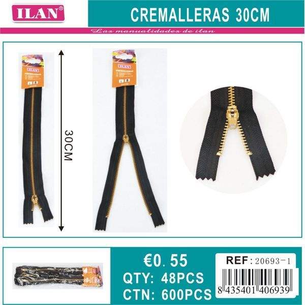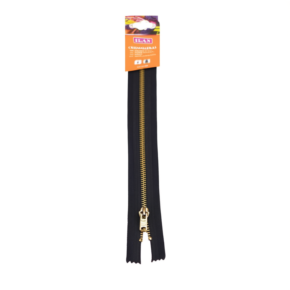 Cerniera Ilan 30Cm con Denti in Metallo Nero per Cucito e Artigianato