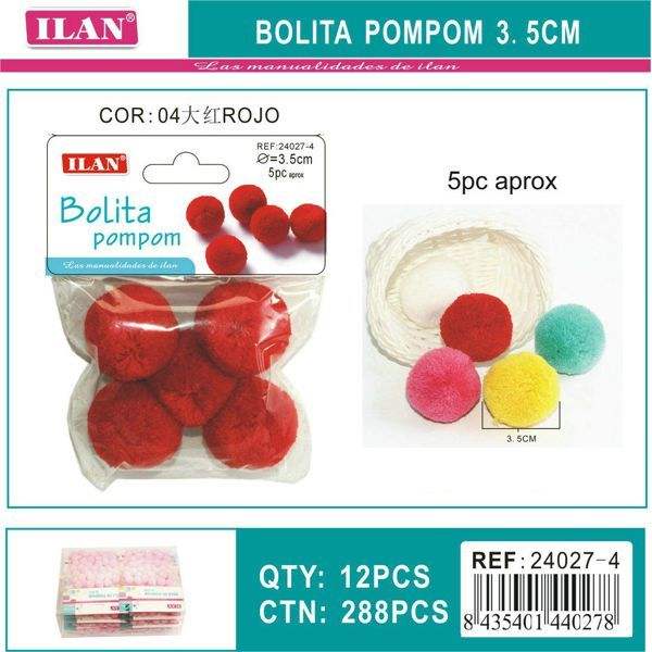 Pompon Iln Bolita 3,5 cm Rosso per Decorazioni Artigianali